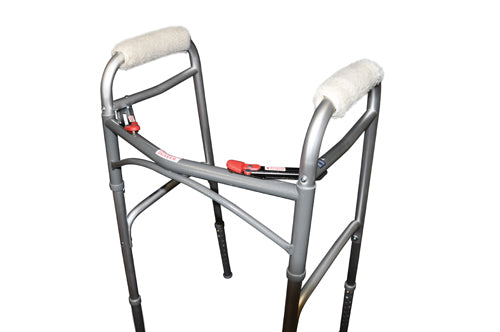 Provides the ultimate in comfort to the hands of walker users * Plush synthetic fleece sheepskin evenly distributes pressure * Handle covers wrap around the walker handgrips and stay securely in place with a hook and loop closure * Each set contains one pair of handgrip covers * Provides natural warmth in the cold * 8 long and designed to fit almost every walker handgrip * Washable *
